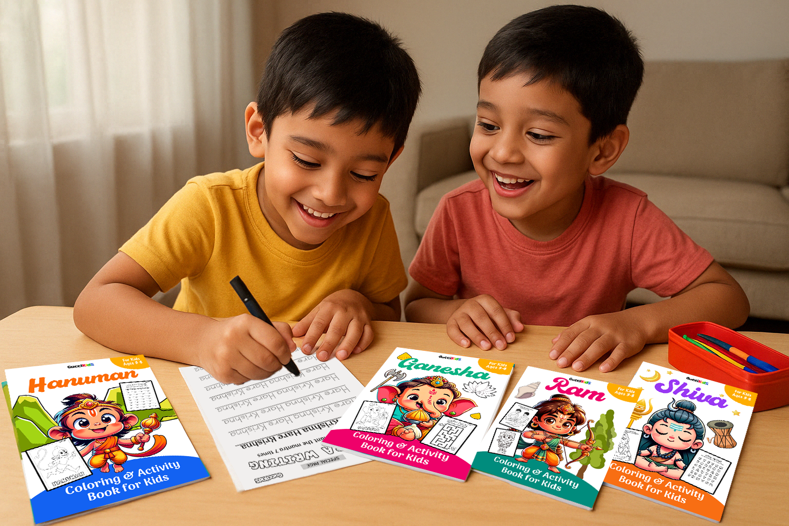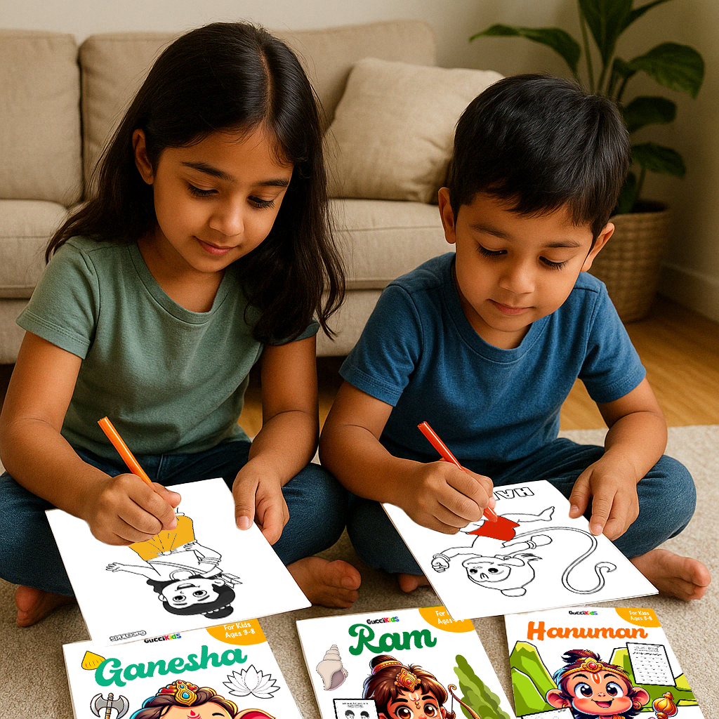 Engage your child with coloring and activity books that teach the stories of Hindu mythology and Indian culture